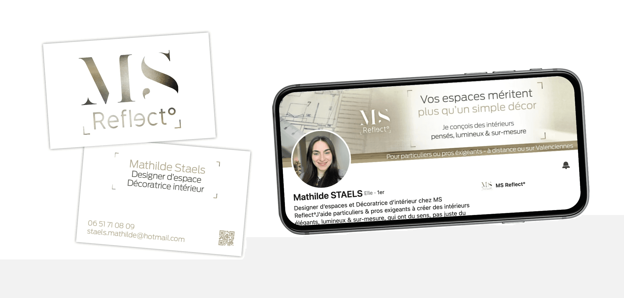 Création d’identité pour Mathilde Staels, designer d’espace spécialisée dans la matière et les effets de lumière.